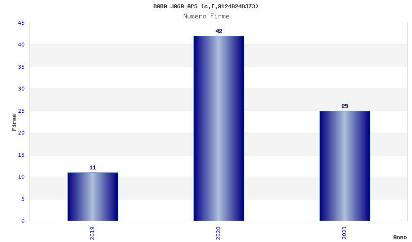 | Anno | Firme | Importi | Media | Naz. | Reg. | Prov. | Comu. |