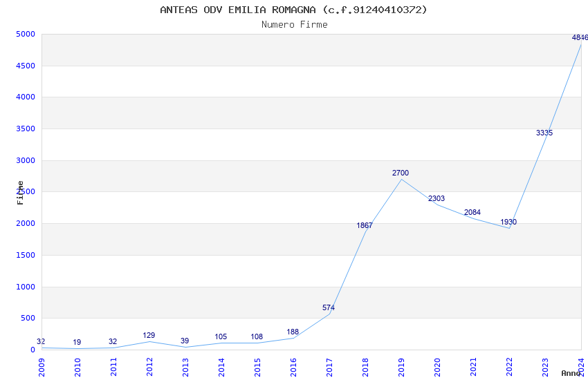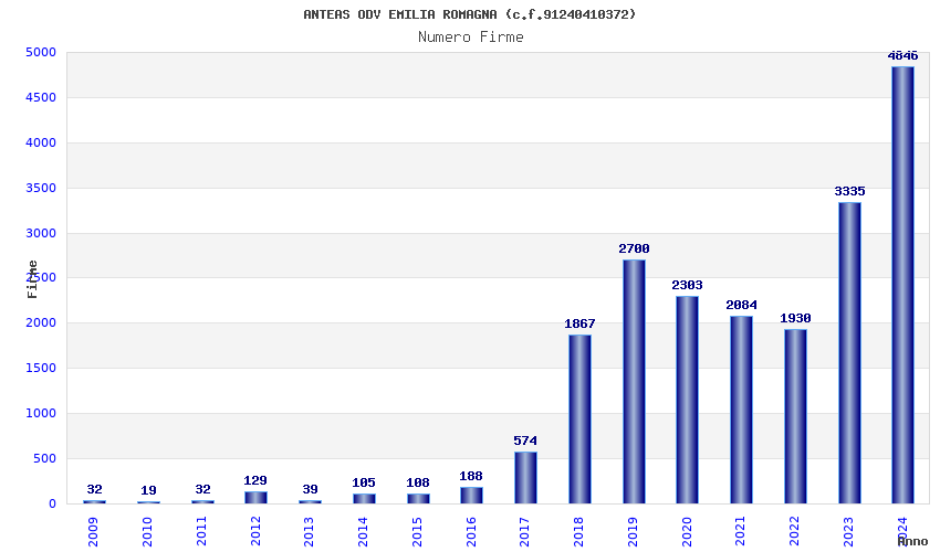 | Anno | Firme | Importi | Media | Naz. | Reg. | Prov. | Comu. |