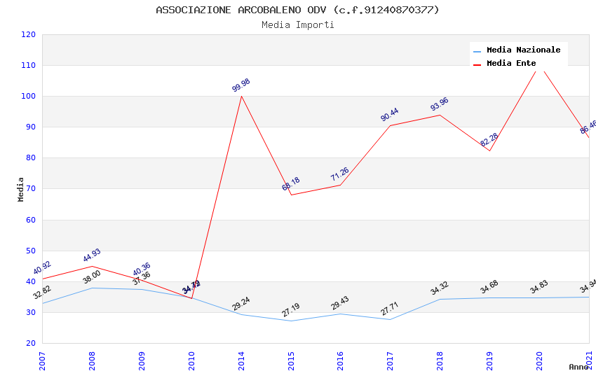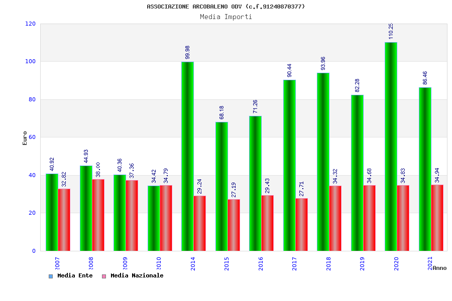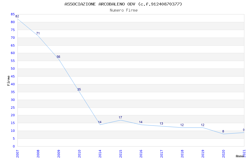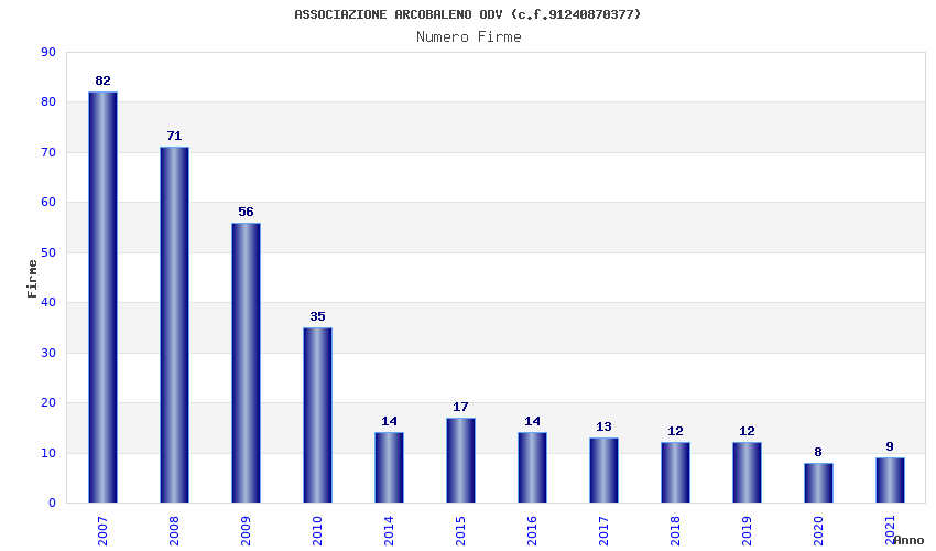 | Anno | Firme | Importi | Media | Naz. | Reg. | Prov. | Comu. |