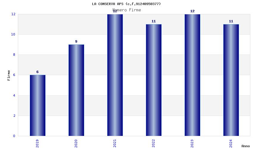 | Anno | Firme | Importi | Media | Naz. | Reg. | Prov. | Comu. |