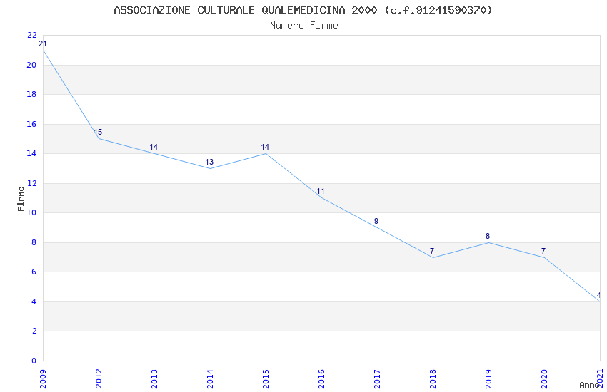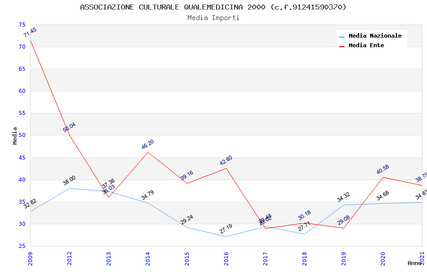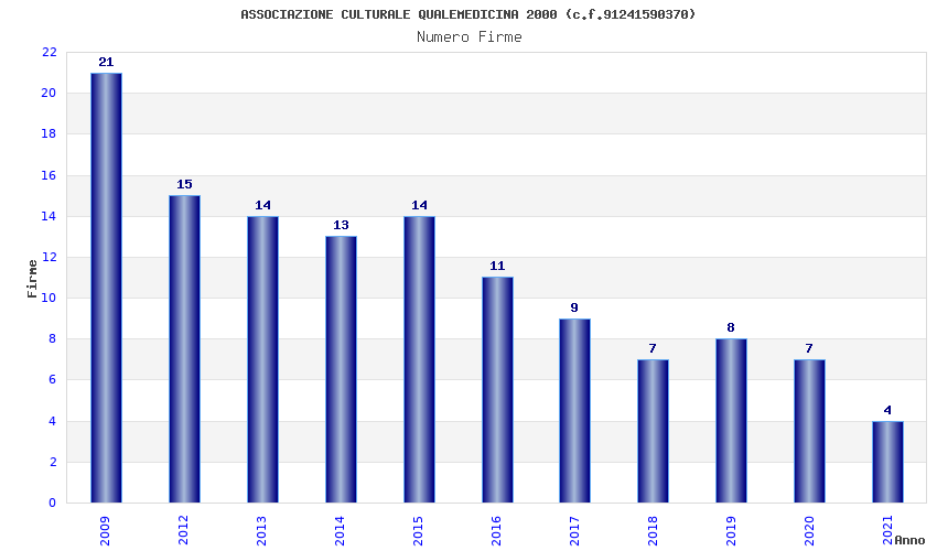 | Anno | Firme | Importi | Media | Naz. | Reg. | Prov. | Comu. |