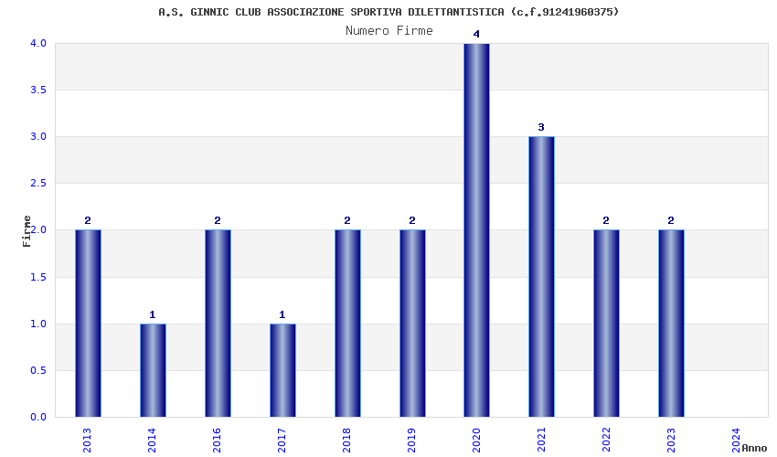 | Anno | Firme | Importi | Media | Naz. | Reg. | Prov. | Comu. |