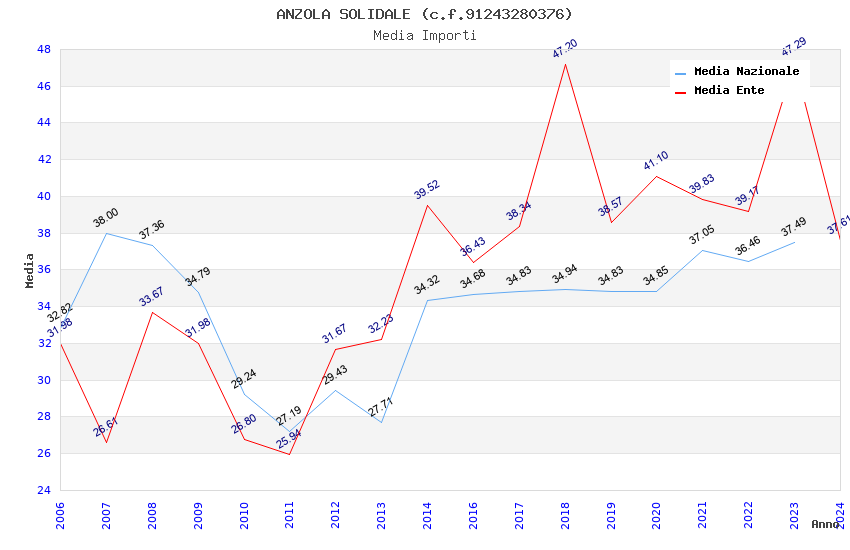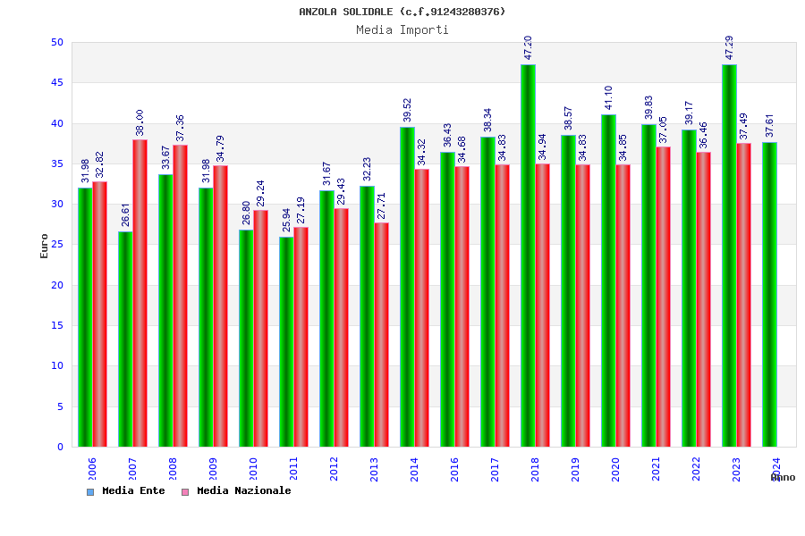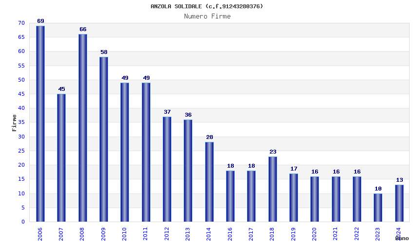 | Anno | Firme | Importi | Media | Naz. | Reg. | Prov. | Comu. |