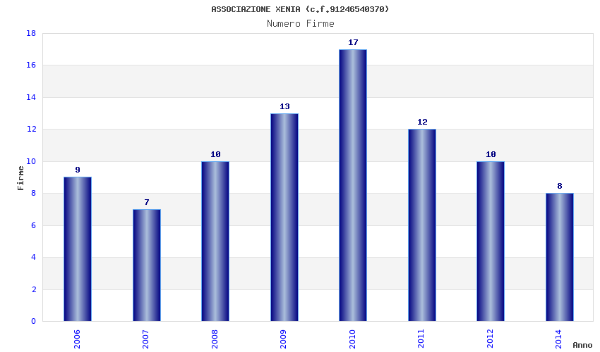 | Anno | Firme | Importi | Media | Naz. | Reg. | Prov. | Comu. |
