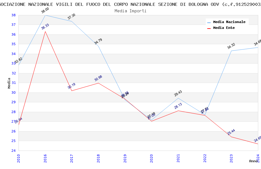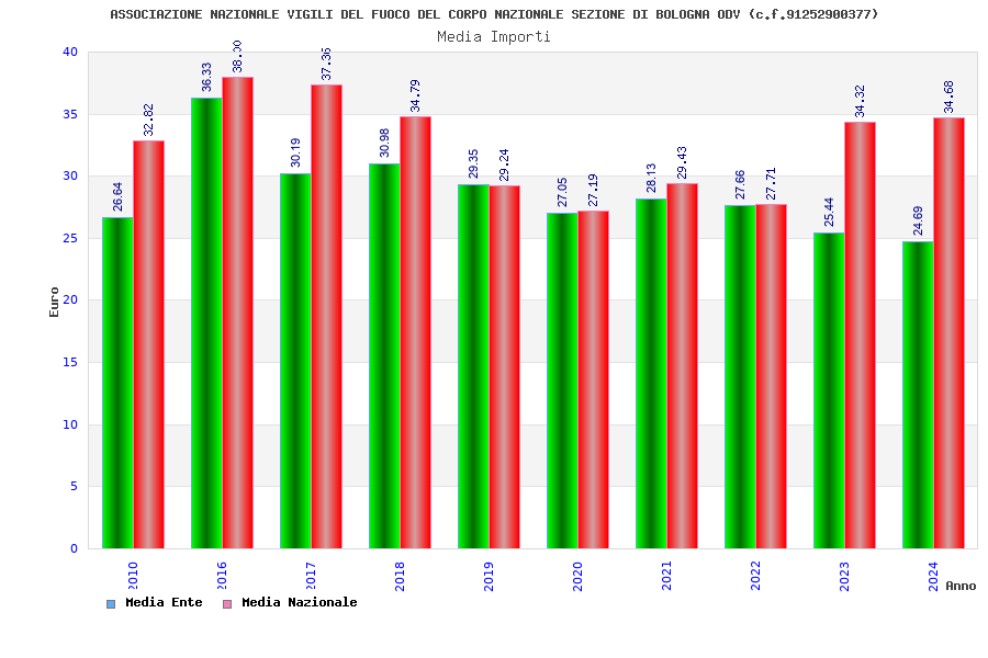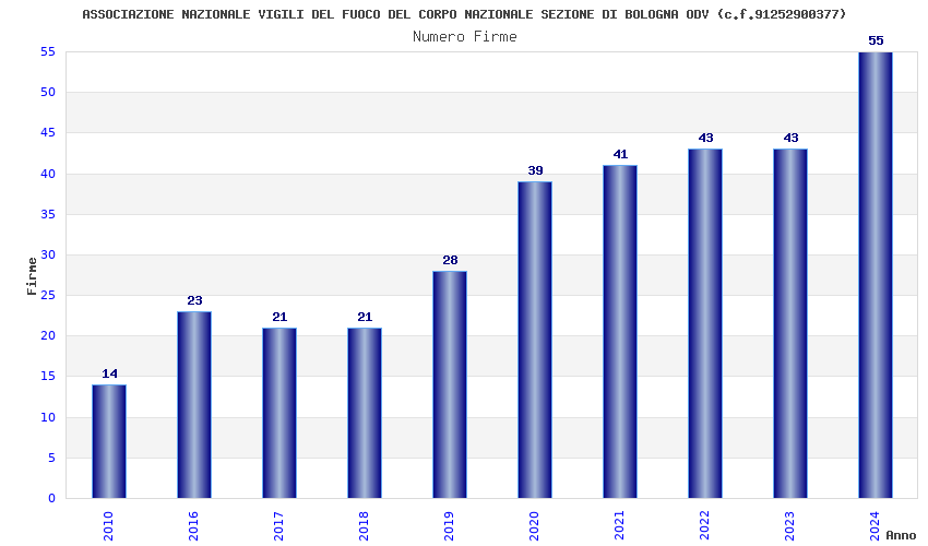 | Anno | Firme | Importi | Media | Naz. | Reg. | Prov. | Comu. |
