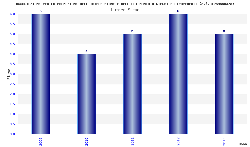 | Anno | Firme | Importi | Media | Naz. | Reg. | Prov. | Comu. |