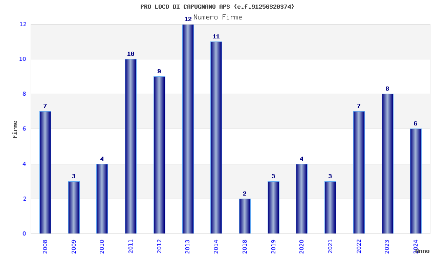 Anno Firme Importi Media Naz. Reg. Prov. Comu.