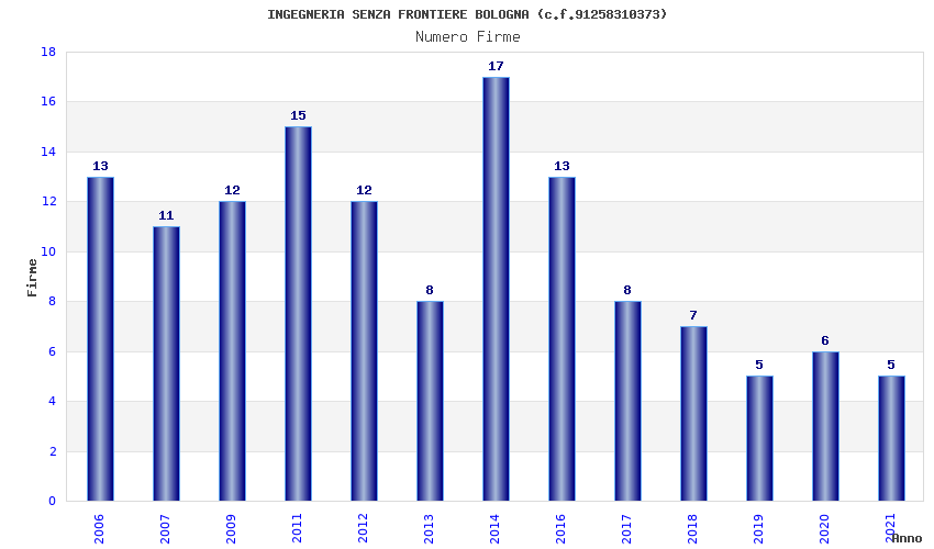 | Anno | Firme | Importi | Media | Naz. | Reg. | Prov. | Comu. |