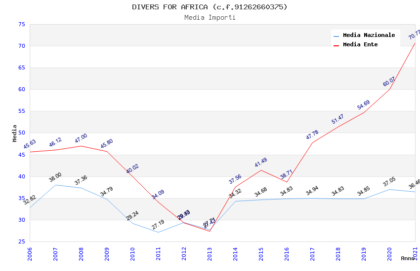 | Anno | Firme | Importi | Media | Naz. | Reg. | Prov. | Comu. |