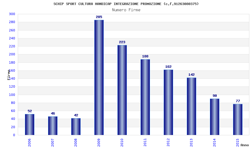 | Anno | Firme | Importi | Media | Naz. | Reg. | Prov. | Comu. |