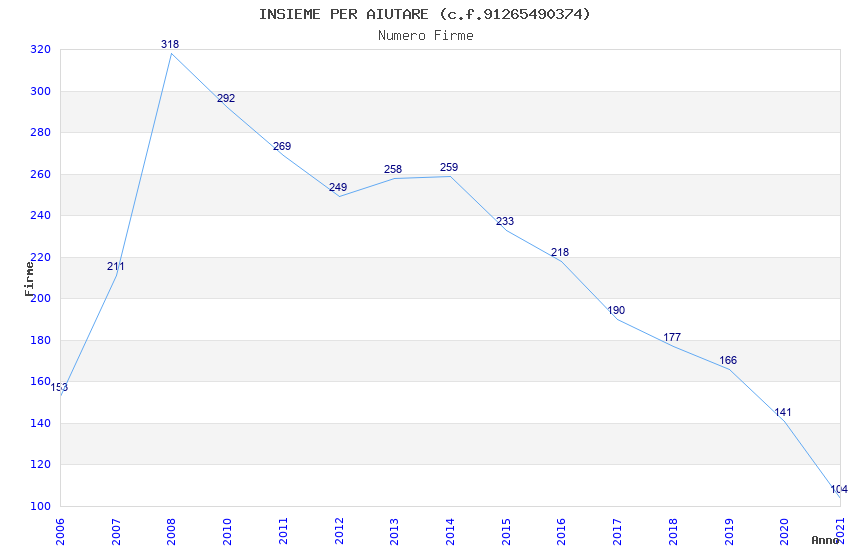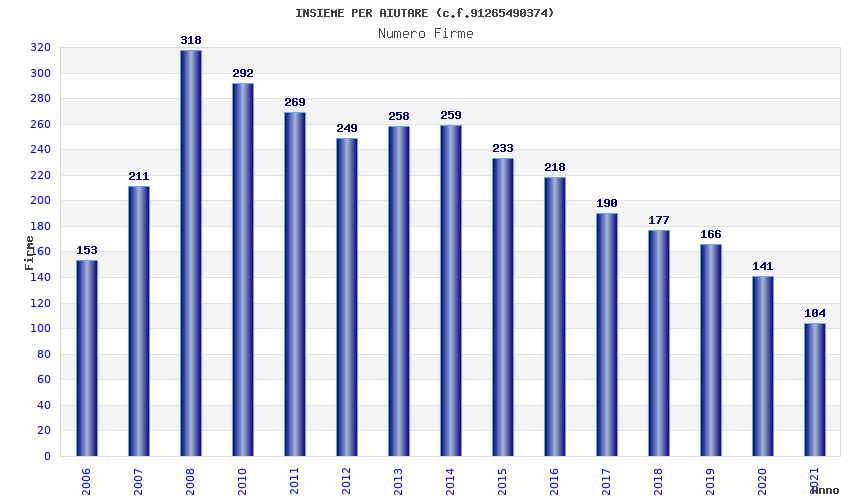 | Anno | Firme | Importi | Media | Naz. | Reg. | Prov. | Comu. |