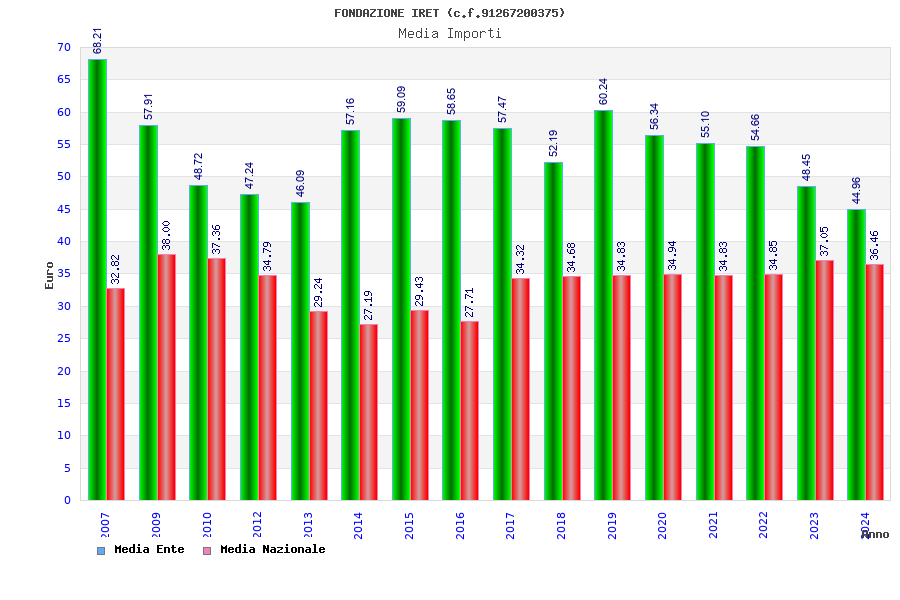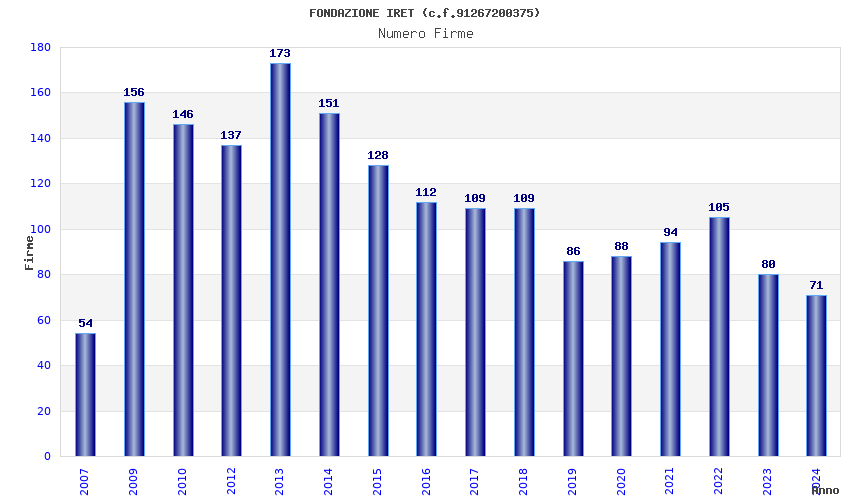 | Anno | Firme | Importi | Media | Naz. | Reg. | Prov. | Comu. |