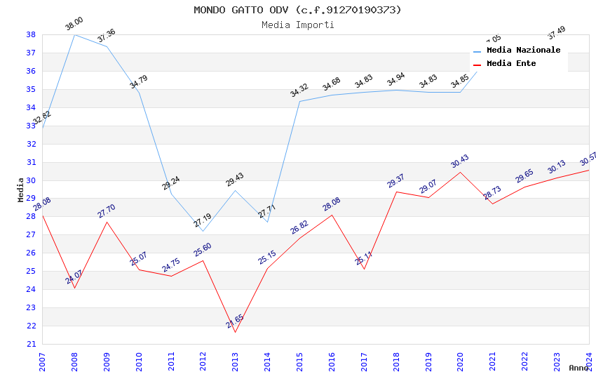 | Anno | Firme | Importi | Media | Naz. | Reg. | Prov. | Comu. |