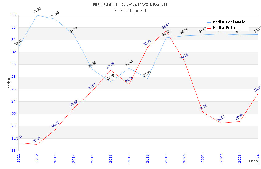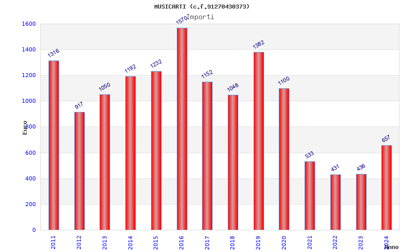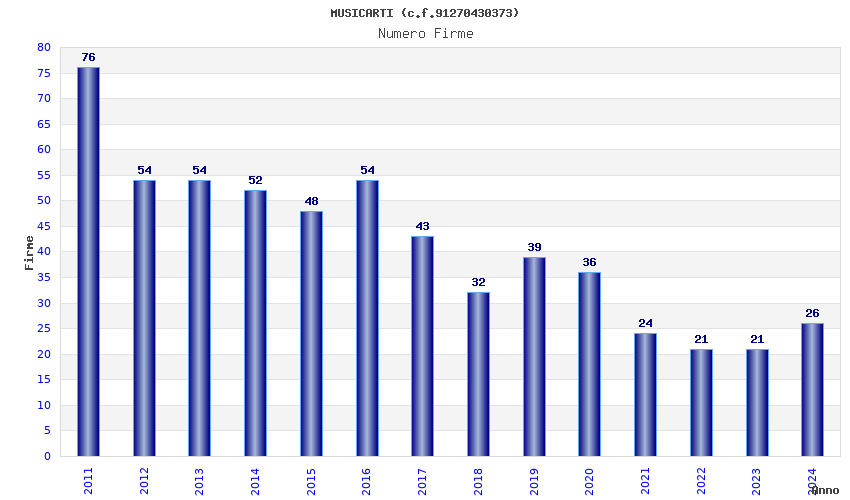 | Anno | Firme | Importi | Media | Naz. | Reg. | Prov. | Comu. |