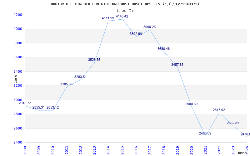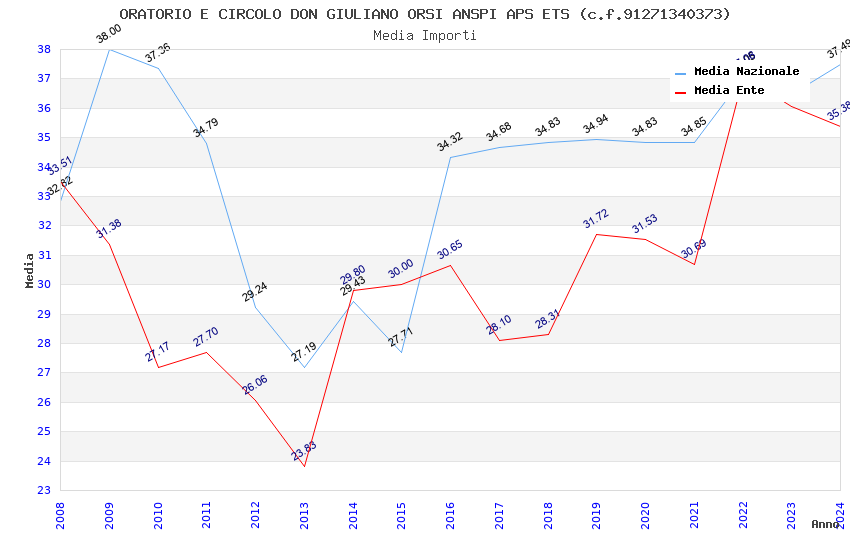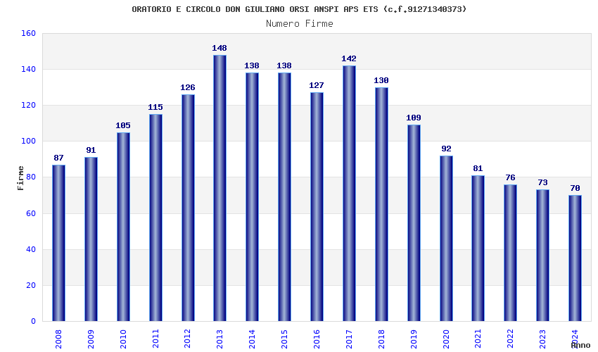 | Anno | Firme | Importi | Media | Naz. | Reg. | Prov. | Comu. |