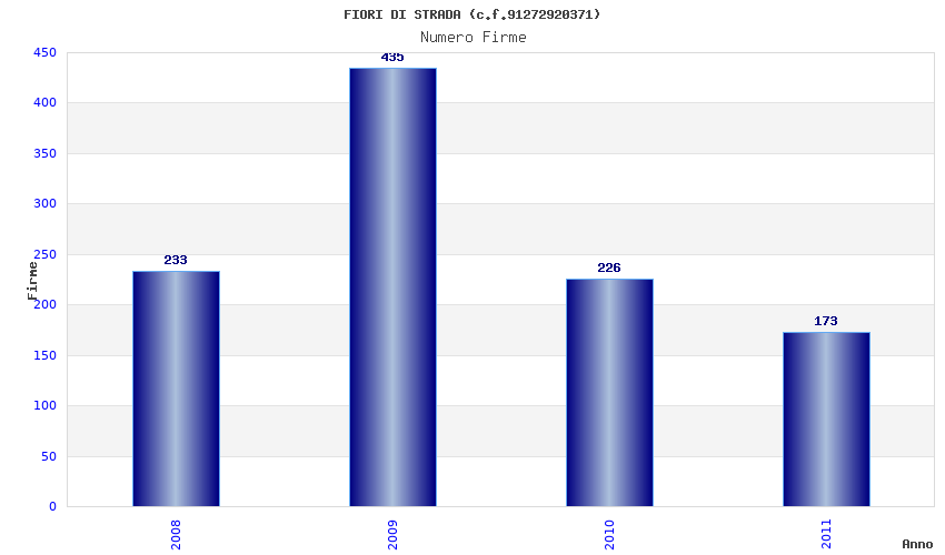 | Anno | Firme | Importi | Media | Naz. | Reg. | Prov. | Comu. |