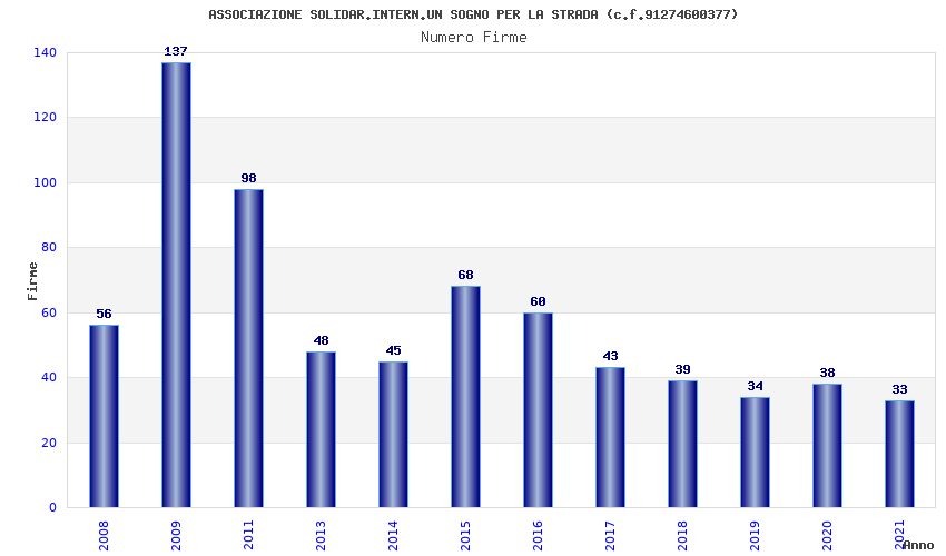| Anno | Firme | Importi | Media | Naz. | Reg. | Prov. | Comu. |