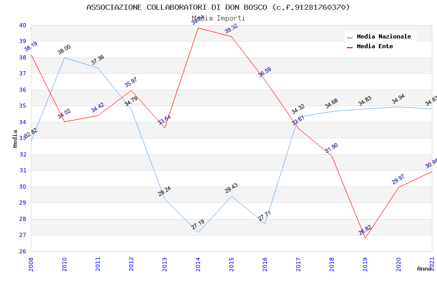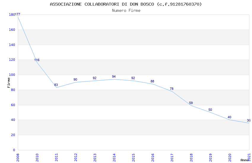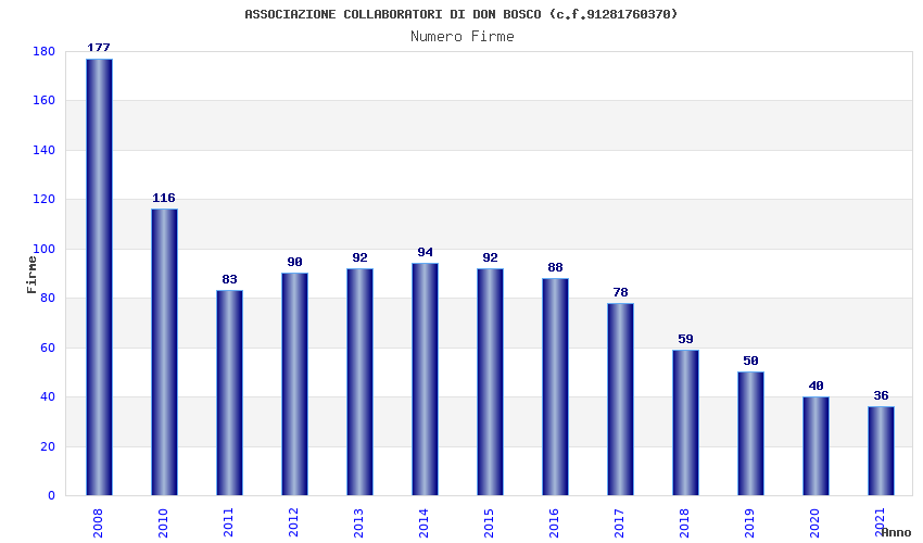 | Anno | Firme | Importi | Media | Naz. | Reg. | Prov. | Comu. |
