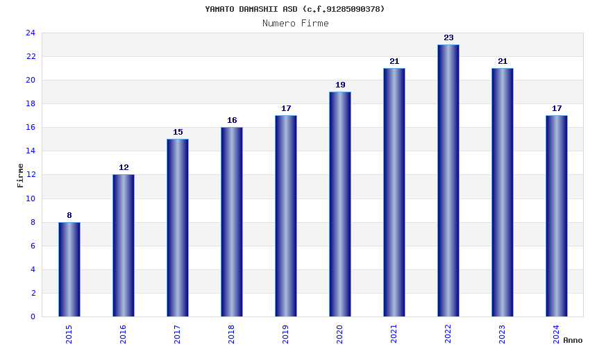 | 2023 | 21 | 608,21 | 28,96 | 45.009 | 3.943 | 918 | 8 |