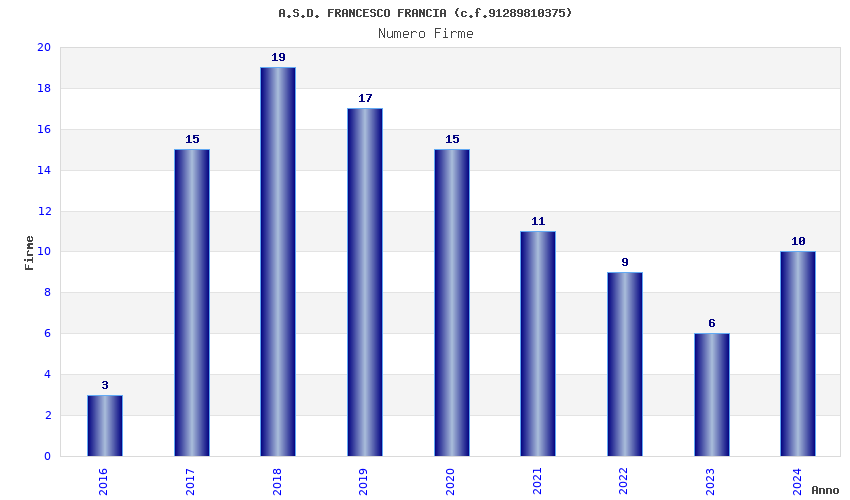 | Anno | Firme | Importi | Media | Naz. | Reg. | Prov. | Comu. |