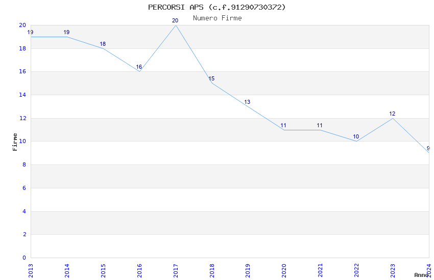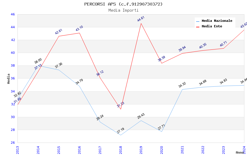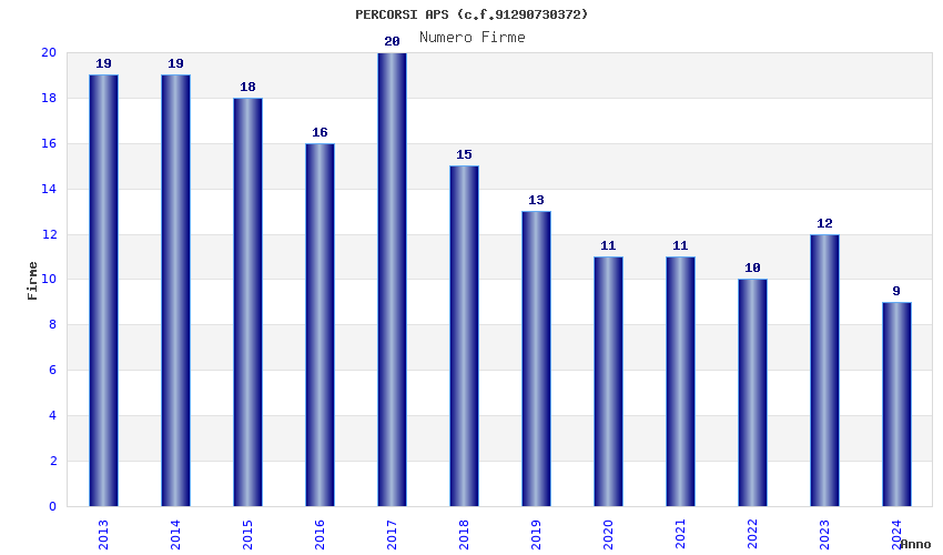 | Anno | Firme | Importi | Media | Naz. | Reg. | Prov. | Comu. |