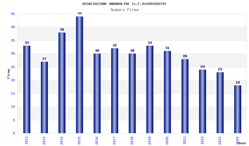 | Anno | Firme | Importi | Media | Naz. | Reg. | Prov. | Comu. |