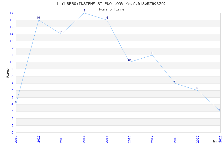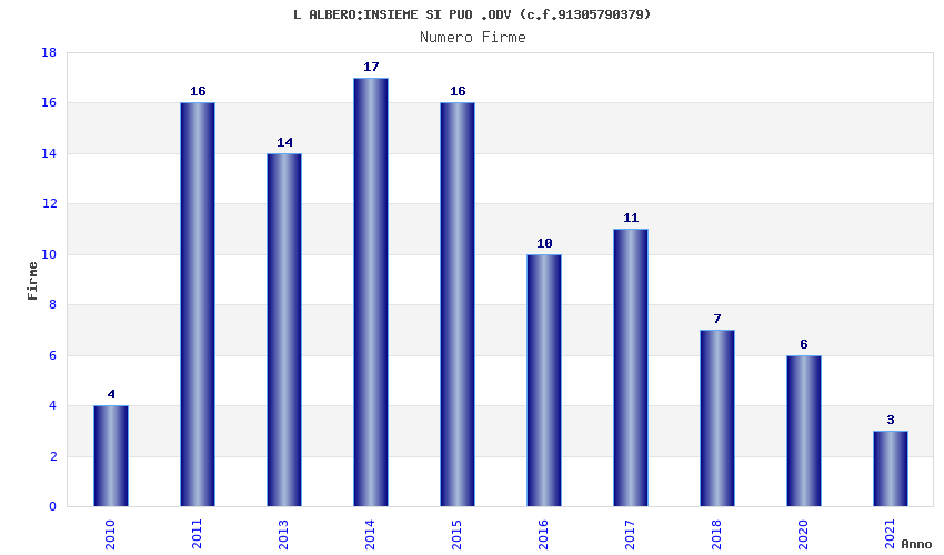 | Anno | Firme | Importi | Media | Naz. | Reg. | Prov. | Comu. |