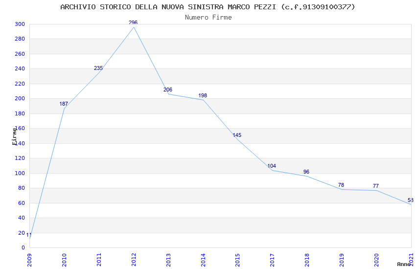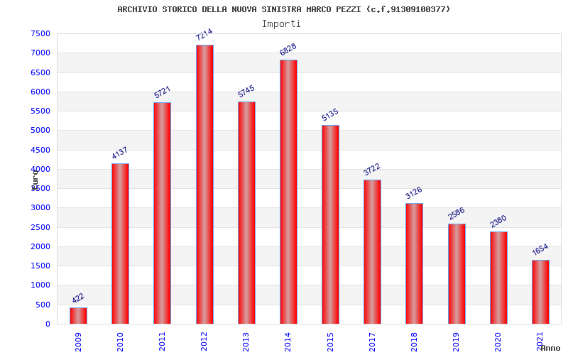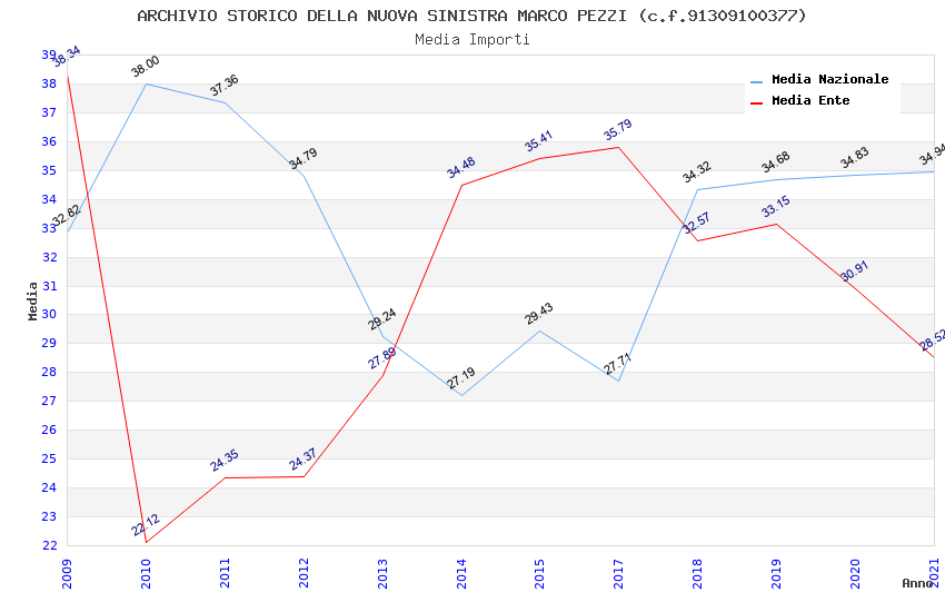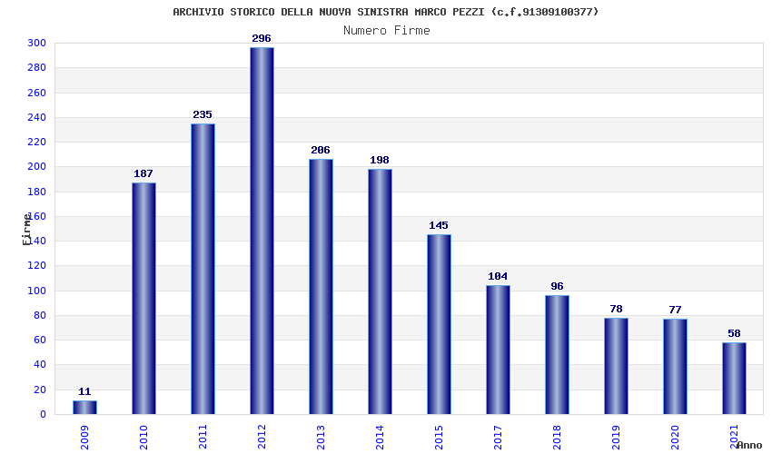 | Anno | Firme | Importi | Media | Naz. | Reg. | Prov. | Comu. |