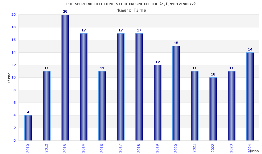 | Anno | Firme | Importi | Media | Naz. | Reg. | Prov. | Comu. |