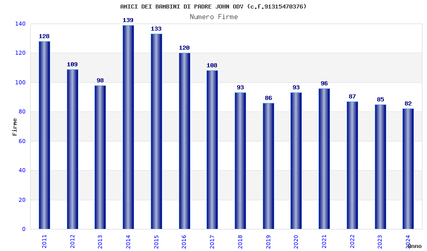 | Anno | Firme | Importi | Media | Naz. | Reg. | Prov. | Comu. |