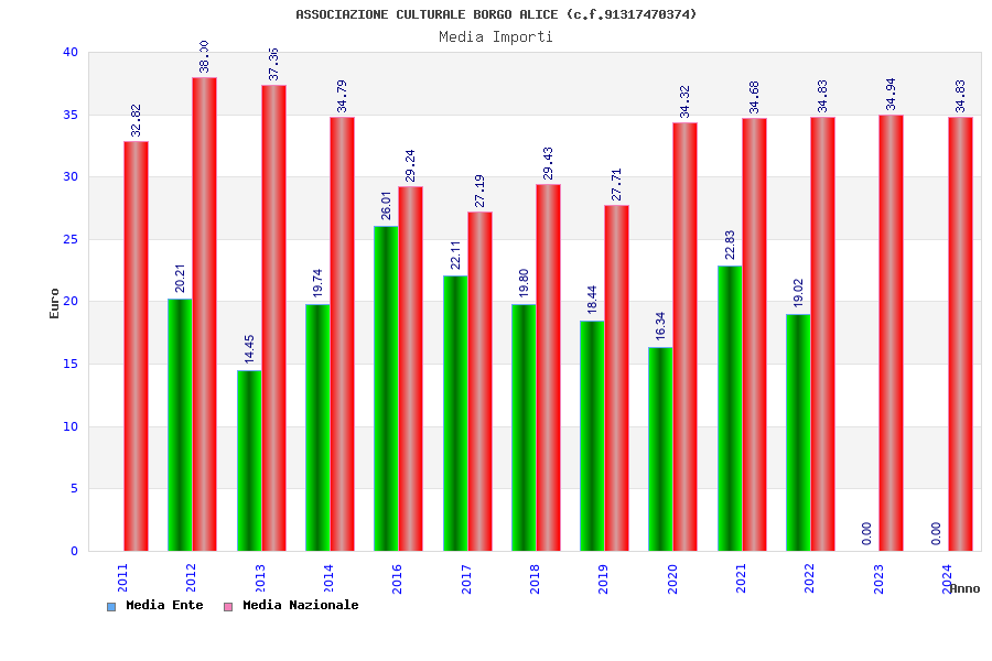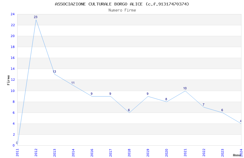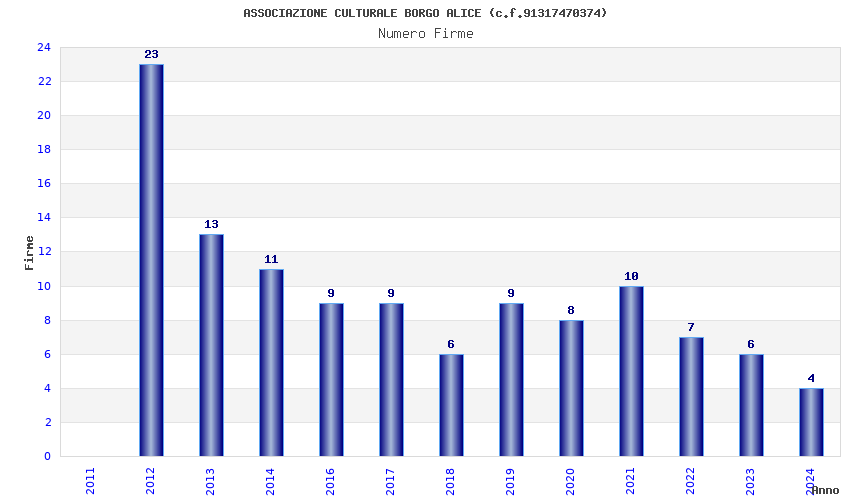 | Anno | Firme | Importi | Media | Naz. | Reg. | Prov. | Comu. |