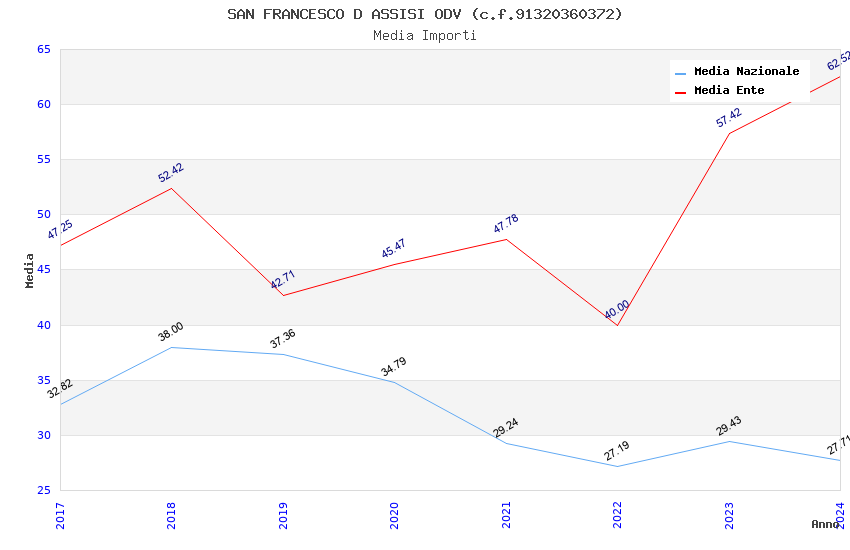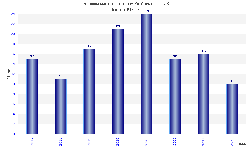 | Anno | Firme | Importi | Media | Naz. | Reg. | Prov. | Comu. |