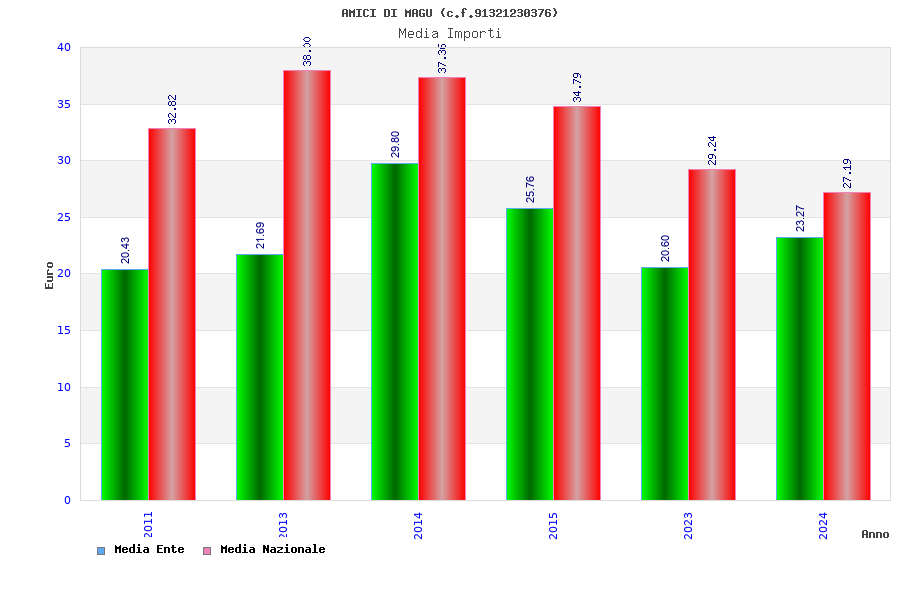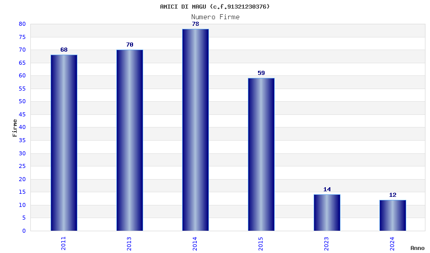 | Anno | Firme | Importi | Media | Naz. | Reg. | Prov. | Comu. |
