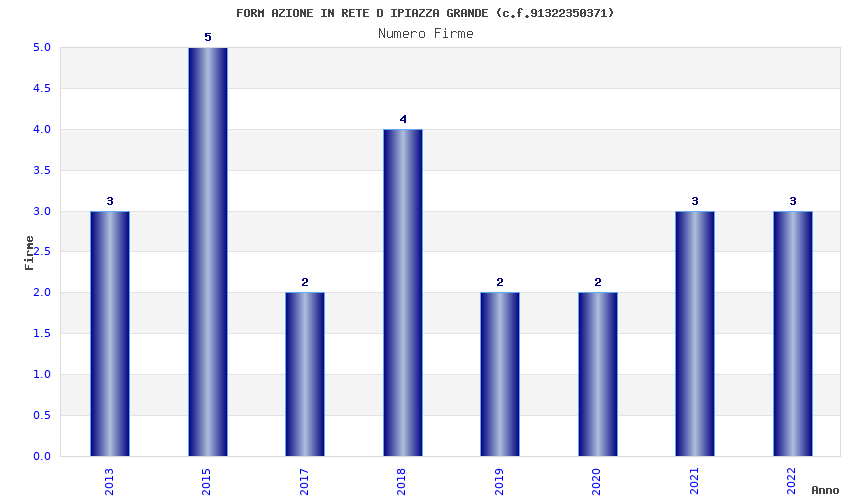 | Anno | Firme | Importi | Media | Naz. | Reg. | Prov. | Comu. |