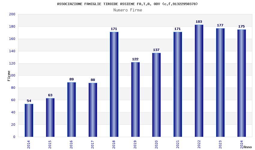 | Anno | Firme | Importi | Media | Naz. | Reg. | Prov. | Comu. |