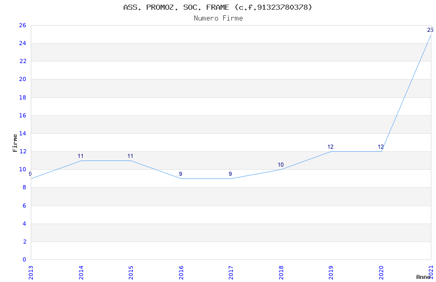 | Anno | Firme | Importi | Media | Naz. | Reg. | Prov. | Comu. |