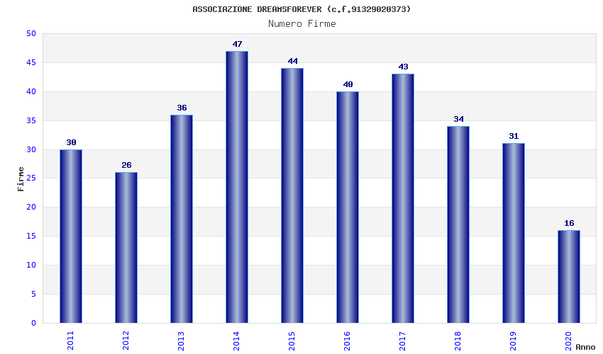 | Anno | Firme | Importi | Media | Naz. | Reg. | Prov. | Comu. |