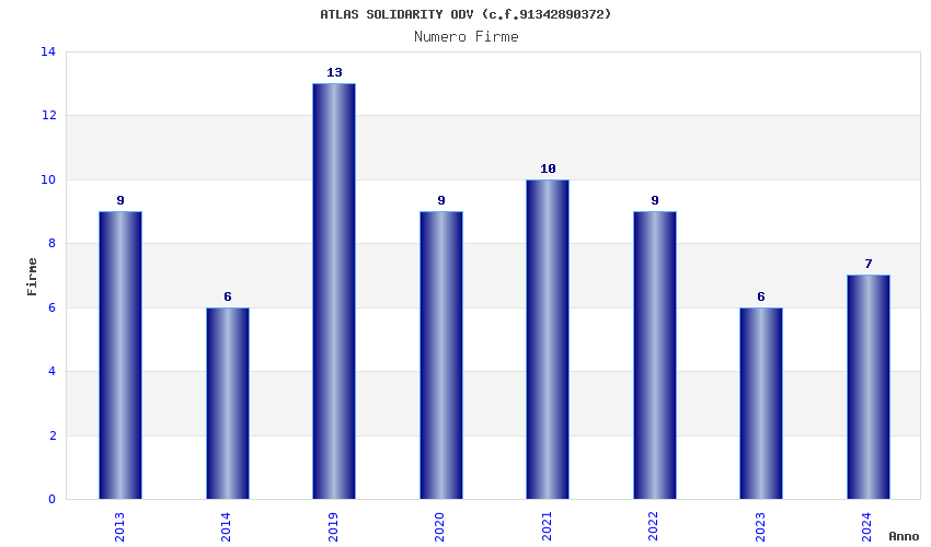| Anno | Firme | Importi | Media | Naz. | Reg. | Prov. | Comu. |