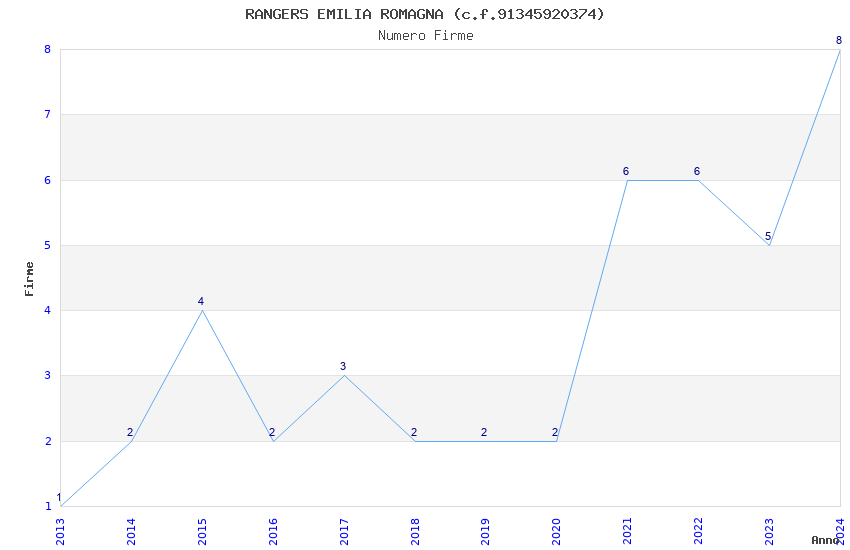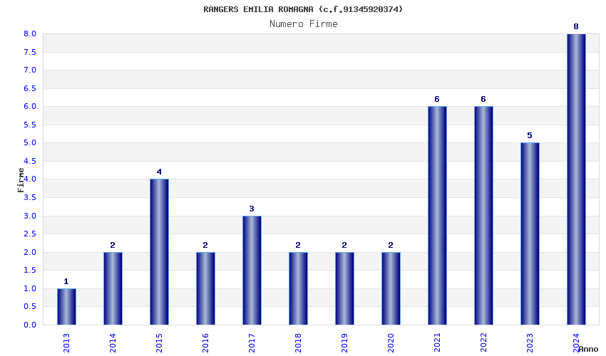| Anno | Firme | Importi | Media | Naz. | Reg. | Prov. | Comu. |