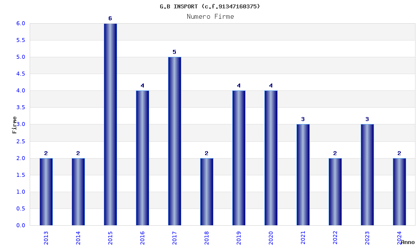 | Anno | Firme | Importi | Media | Naz. | Reg. | Prov. | Comu. |