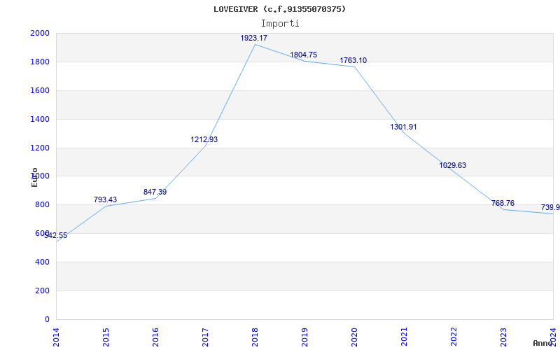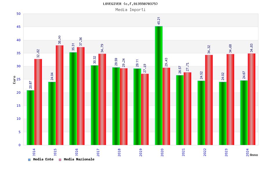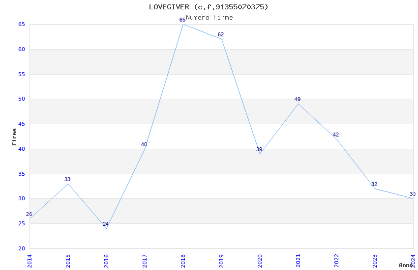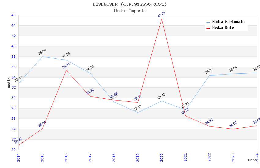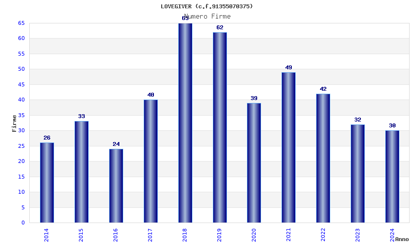 | Anno | Firme | Importi | Media | Naz. | Reg. | Prov. | Comu. |