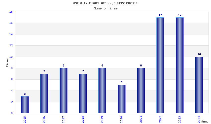 | Anno | Firme | Importi | Media | Naz. | Reg. | Prov. | Comu. |