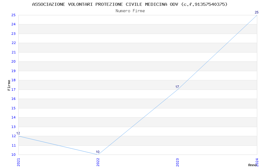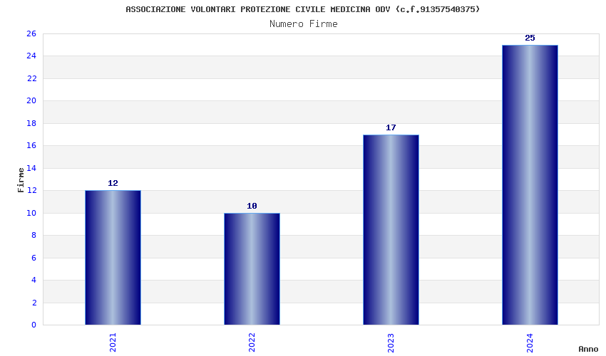 | Anno | Firme | Importi | Media | Naz. | Reg. | Prov. | Comu. |