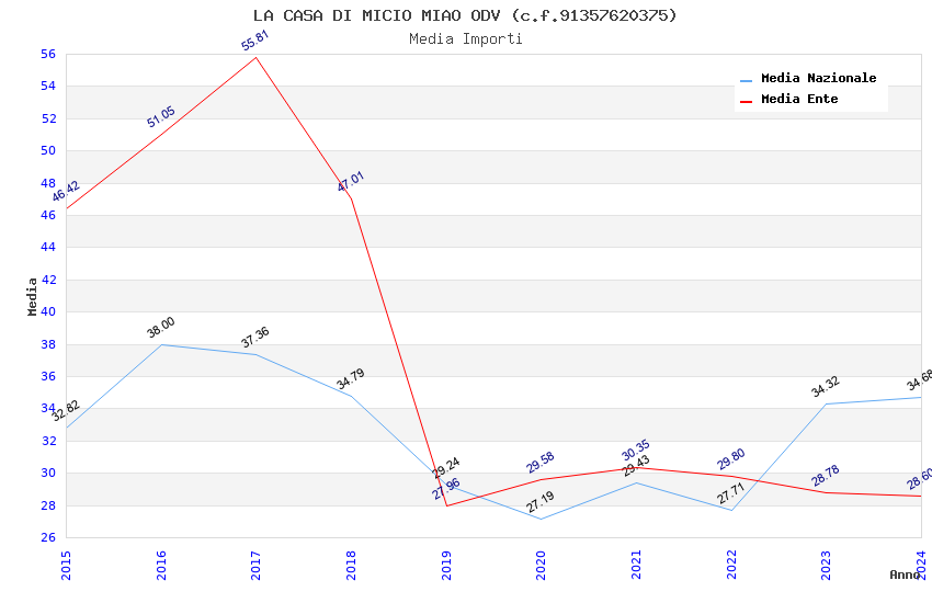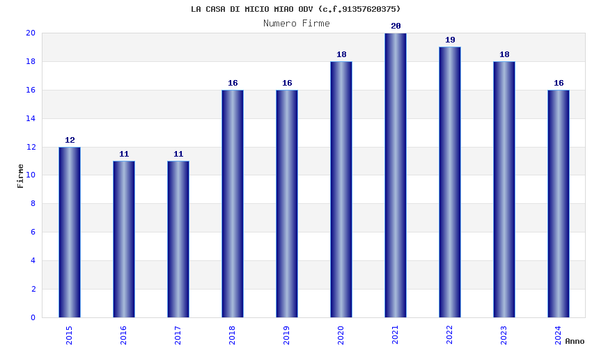 | Anno | Firme | Importi | Media | Naz. | Reg. | Prov. | Comu. |