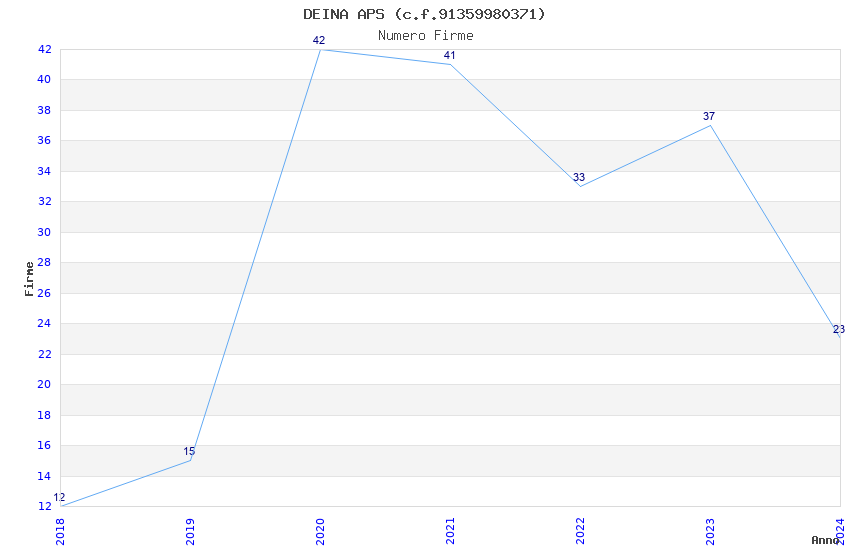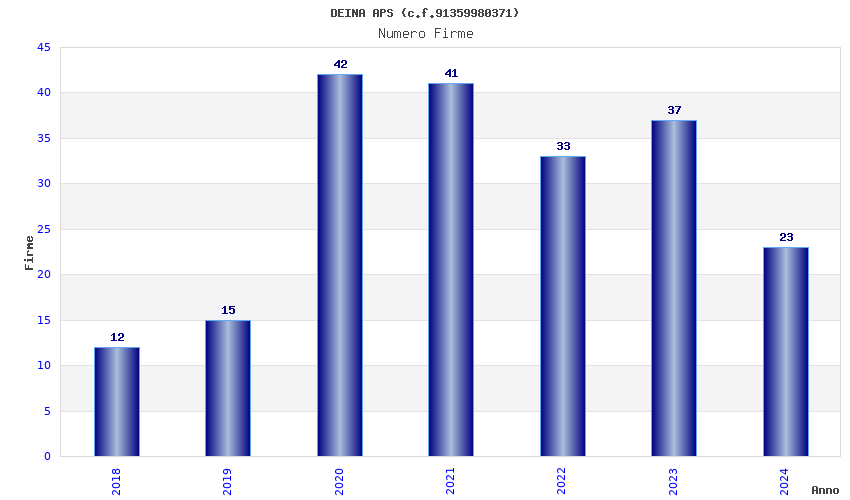 | Anno | Firme | Importi | Media | Naz. | Reg. | Prov. | Comu. |