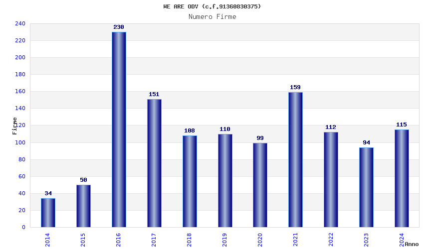 | Anno | Firme | Importi | Media | Naz. | Reg. | Prov. | Comu. |
