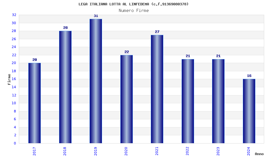 | Anno | Firme | Importi | Media | Naz. | Reg. | Prov. | Comu. |