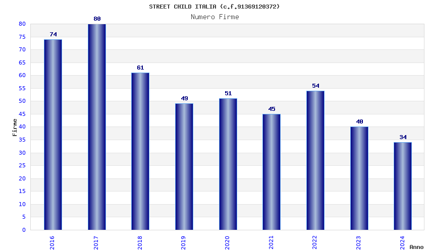 | 2016 | 74 | 2.491,97 | 33,68 | 19.643 | 2.021 | 1.713 | 1.445 |