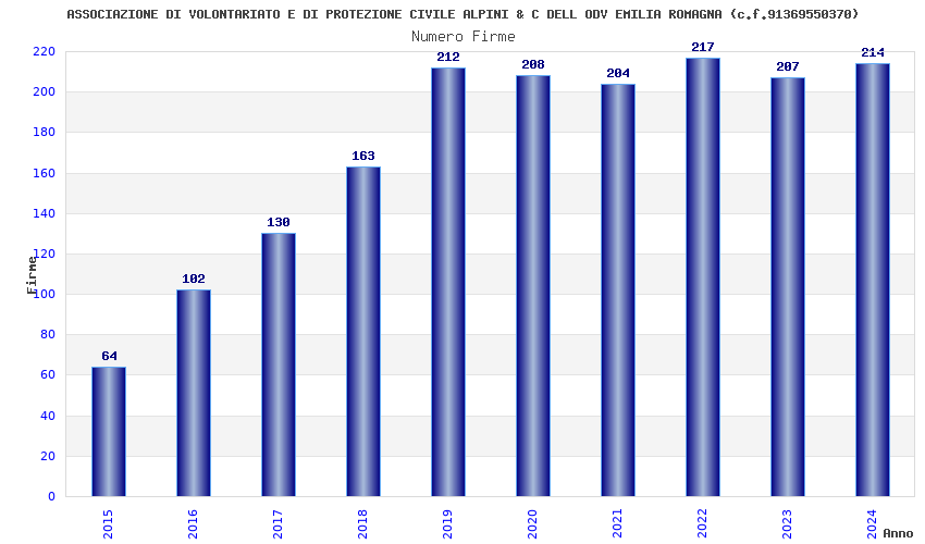 | Anno | Firme | Importi | Media | Naz. | Reg. | Prov. | Comu. |