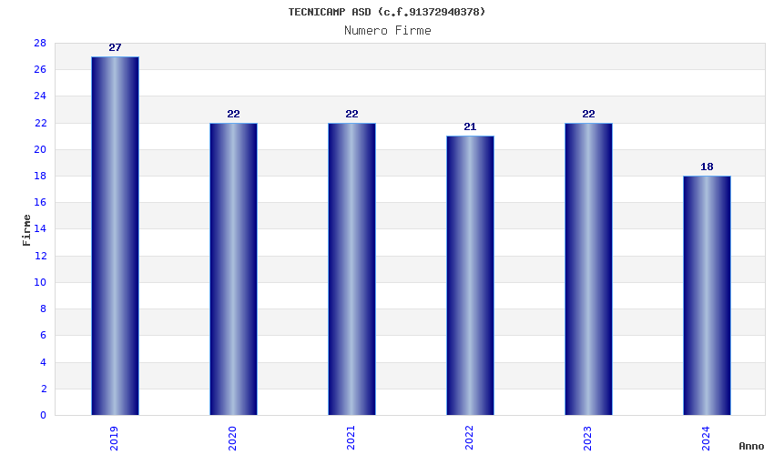 | Anno | Firme | Importi | Media | Naz. | Reg. | Prov. | Comu. |